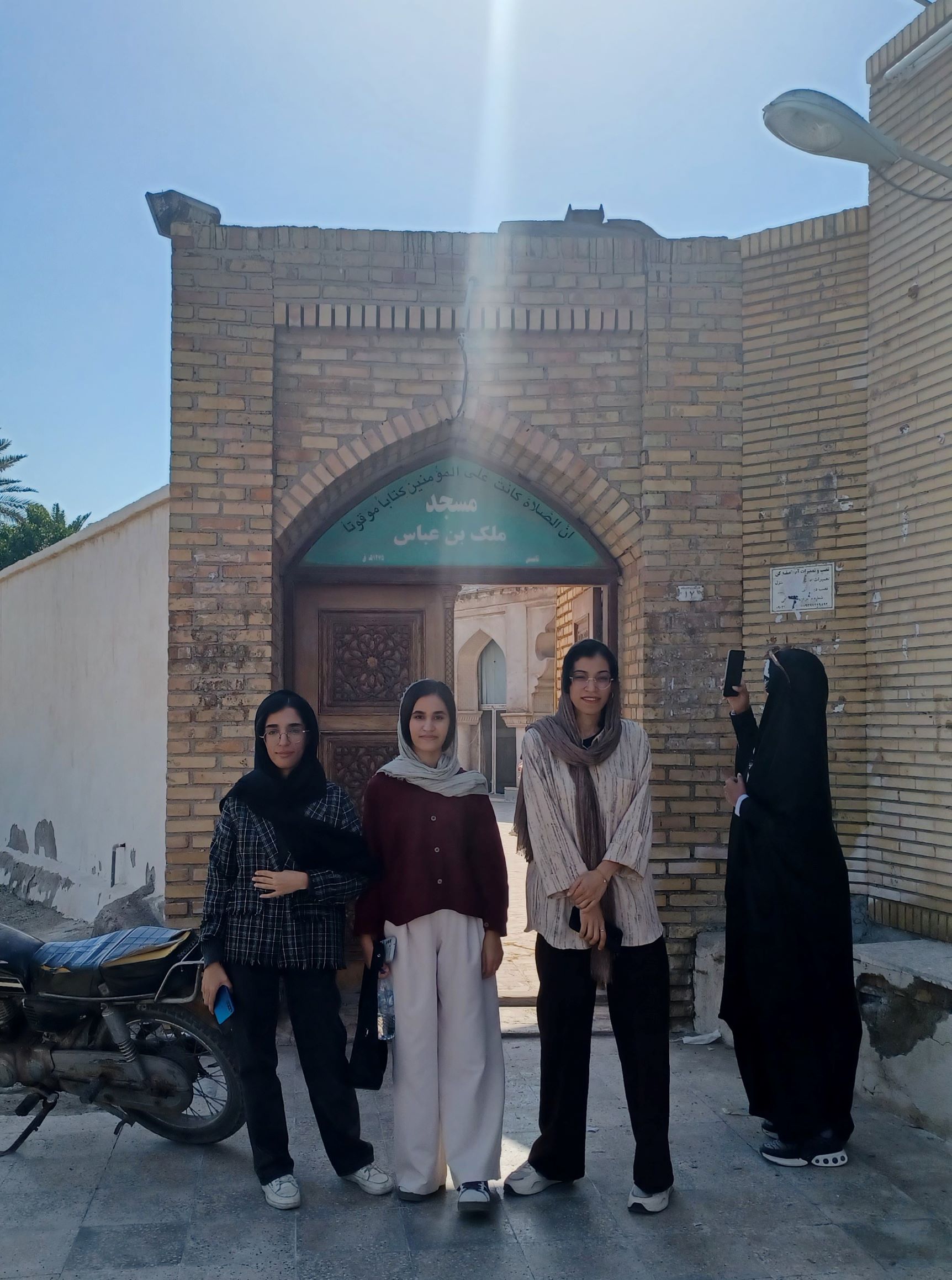 در این برنامه، نخست دانشجویان از مسجد تاریخی ملک بن عباس بازدید کردند؛ مسجدی از قدیمی‌ترین و عریض‌ترین مساجد بندر لنگه که بنای اولیه آن به اواخر دوره تیموری بازمی‌گردد و در دوره‌های صفویه و قاجار مرمت شده است. این مسجد که توسط معمار نامی، محمد نامی، طراحی شده است، دارای آرامگاه سید محمد بن عالم و گنبدی با معماری ویژه است که توسط معماران برجسته گراشی و لاری ساخته شده است.