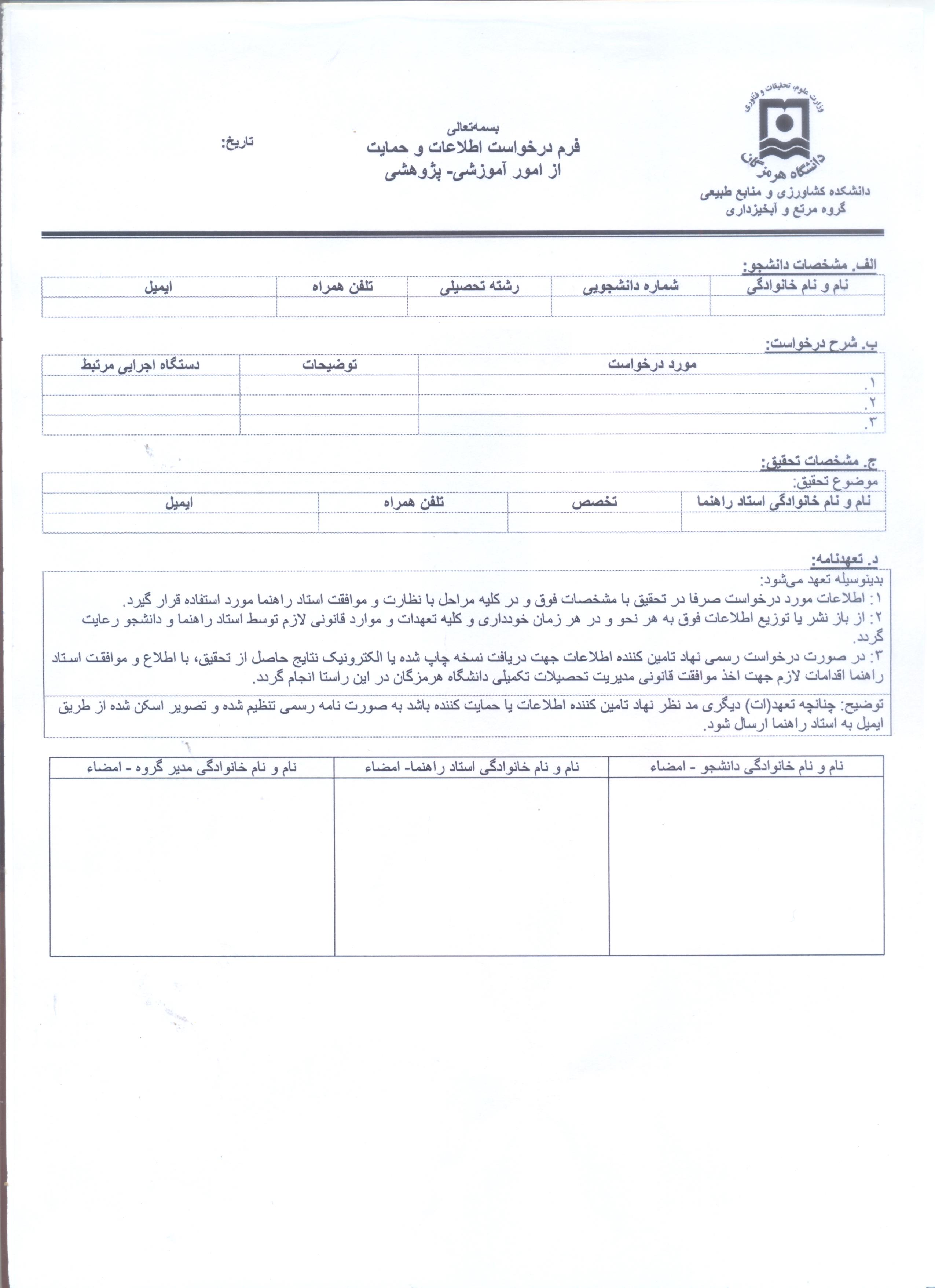 فرم درخواست اطلاعات و حمایت از امور آموزشی_ پژوهشی